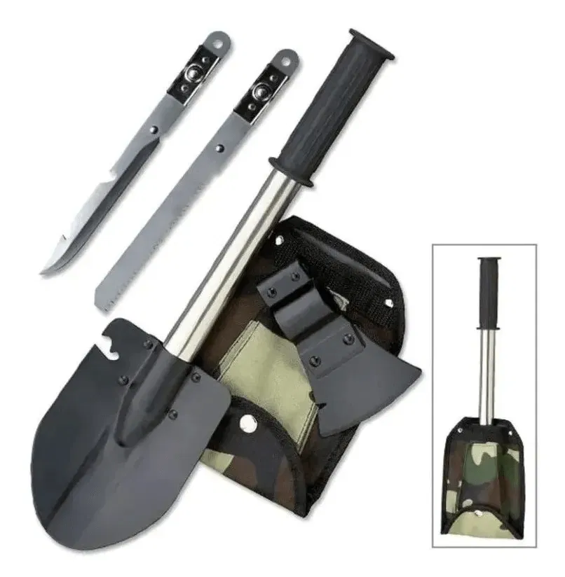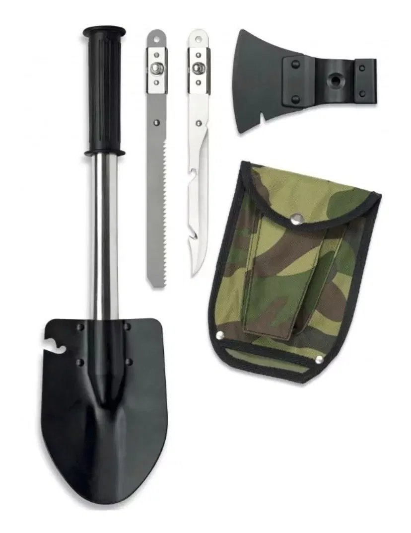 La pala de supervivencia multifunción es una herramienta indispensable para amantes del camping, senderismo, bushcraft y actividades al aire libre. Fabricada en acero de alta resistencia, esta pala no solo sirve para cavar, sino que también se transforma en hacha y permite encastrar filos con sierra, convirtiéndose en una pieza versátil y compacta ideal para cualquier situación de aventura o emergencia.
